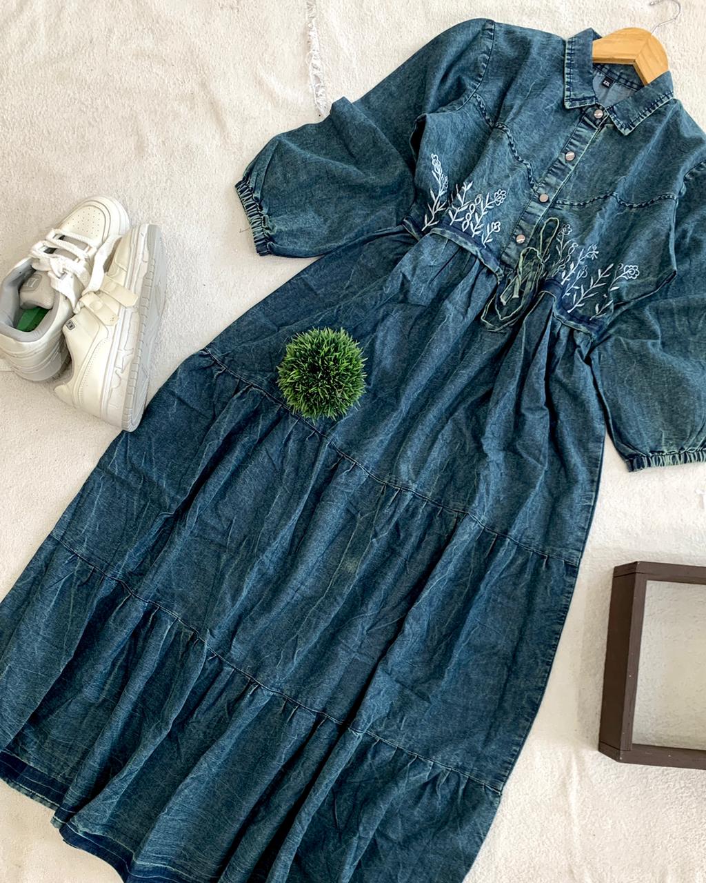 *FULL LENGTH SOFT DENIM* GOWN WITH *STYLISH EMBROIDERY*